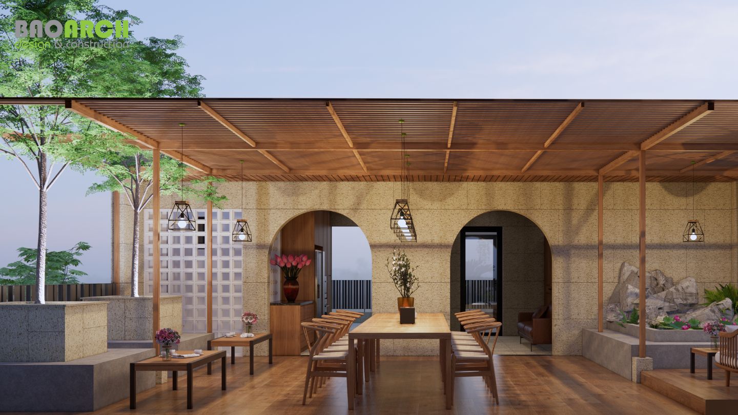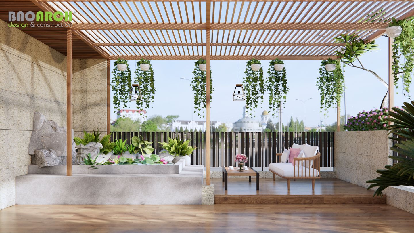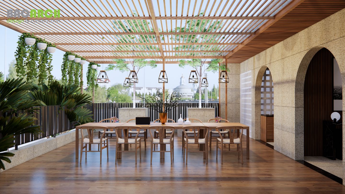 Sân thượng xanh mát trên cao như một ốc đảo giữa lòng thành phố, mở ra tầm nhìn rộng lớn và mang đến cảm giác thư thái, kết nối thiên nhiên giữa những nhộn nhịp của phố thị. Đây không chỉ là một không gian sống mà còn là mô hình kết hợp kinh doanh đỉnh cao, giúp gia chủ vừa phát triển thương hiệu cá nhân, vừa tận hưởng cuộc sống chất lượng ngay trong chính tổ ấm của mình.