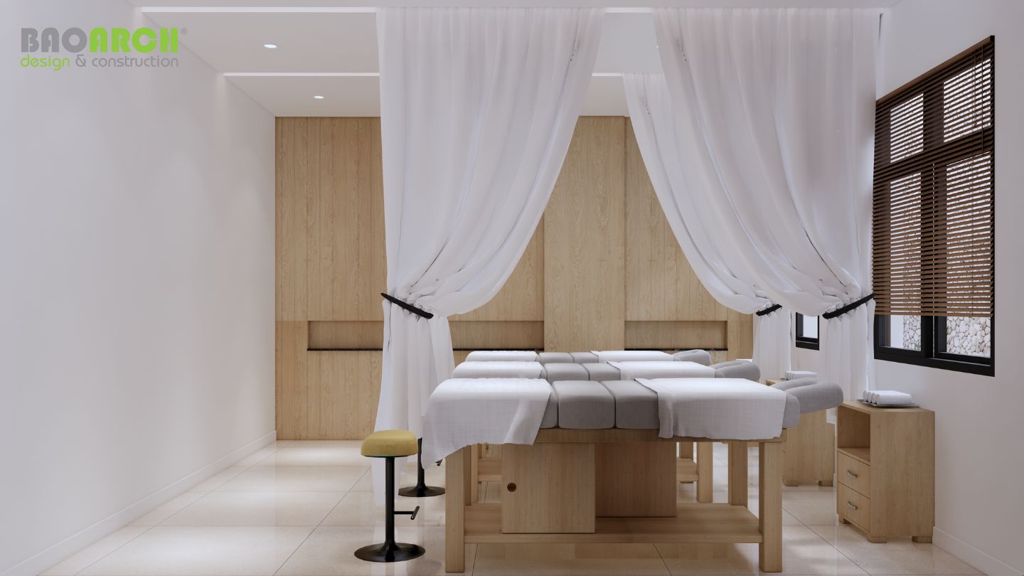 Tầng trệt được bố trí khéo léo để vận hành không gian spa cao cấp theo phong cách tối giản, giao hoà với thiên nhiên, mang đến trải nghiệm nghỉ dưỡng đích thực. Các tầng trên là không gian sinh hoạt của gia đình, được chăm chút trong từng chi tiết, từ nội thất sang trọng, vật liệu tự nhiên như đá và gỗ cao cấp, đến ánh sáng tự nhiên tràn ngập khắp nơi, tạo cảm giác ấm cúng, tinh tế và đầy cảm hứng.