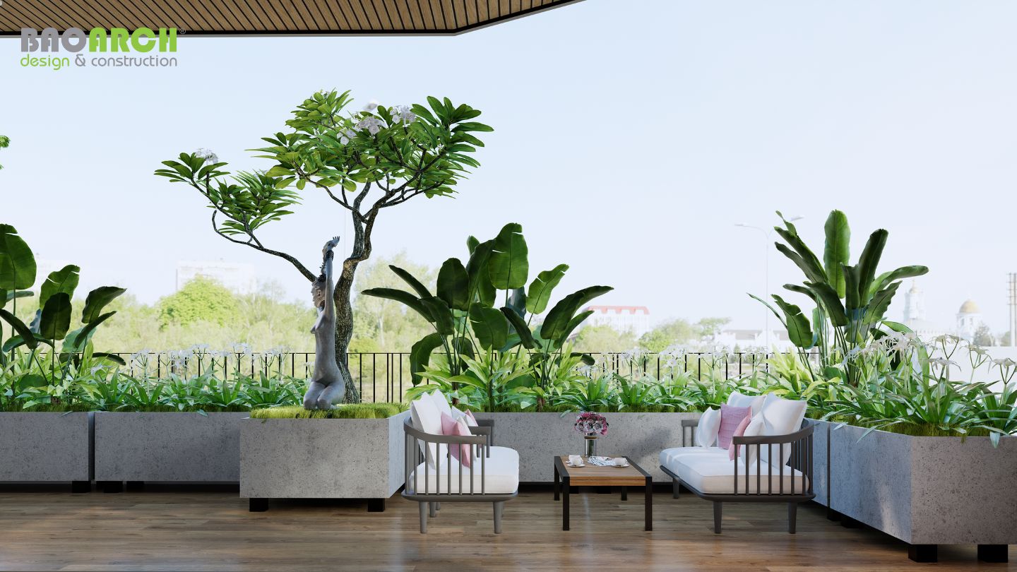 Ban công và sân thượng phủ xanh, đón nắng gió tự nhiên, tạo nên trải nghiệm sống chan hòa giữa thiên nhiên mà vẫn giữ vững đẳng cấp riêng biệt. Không gian nội thất được chăm chút đến từng chi tiết – từ hệ đèn nghệ thuật, bố cục ánh sáng, đến màu sắc vật liệu đều phản ánh đúng tinh thần sống sang trọng và thư thái của gia chủ.