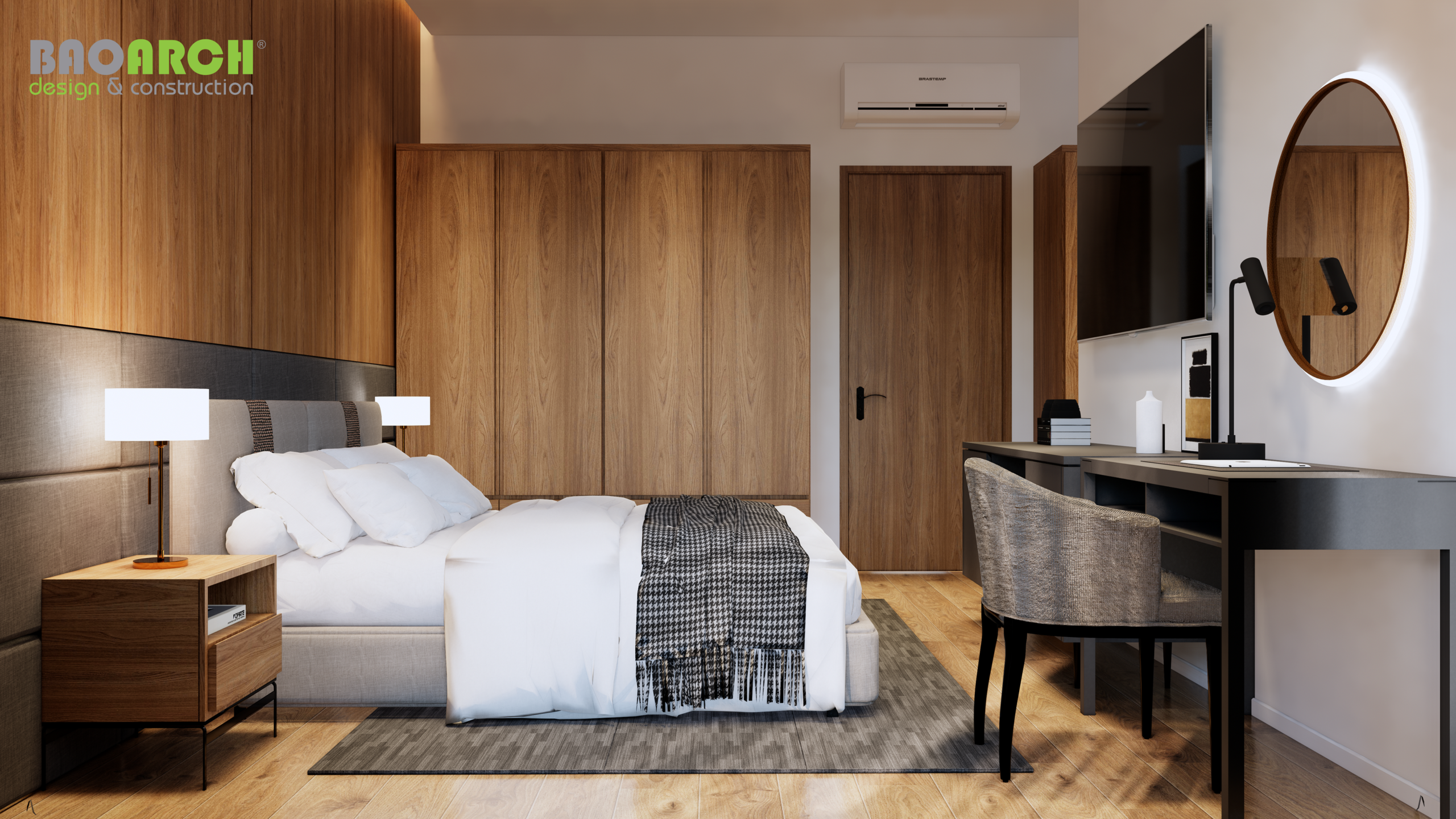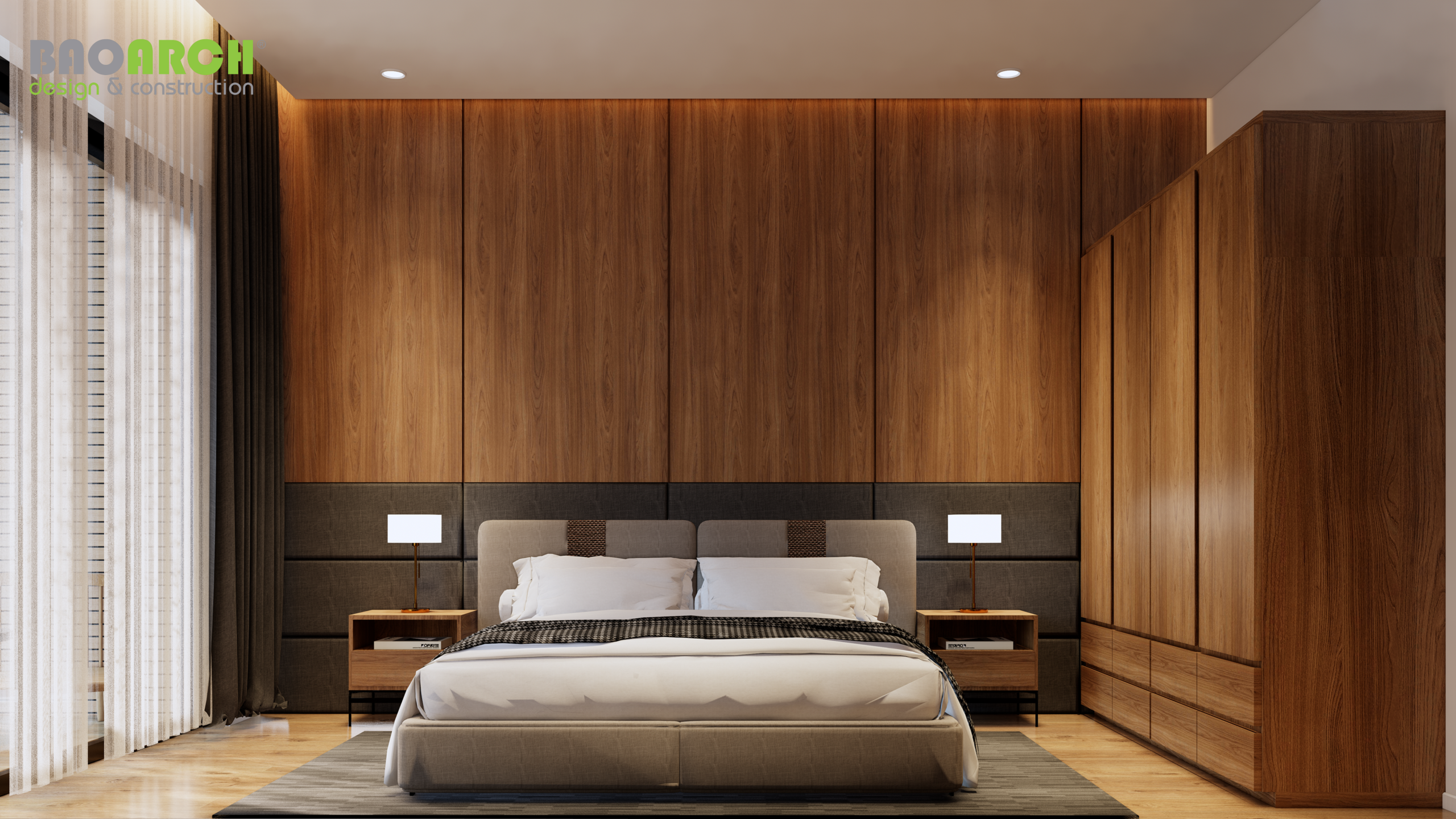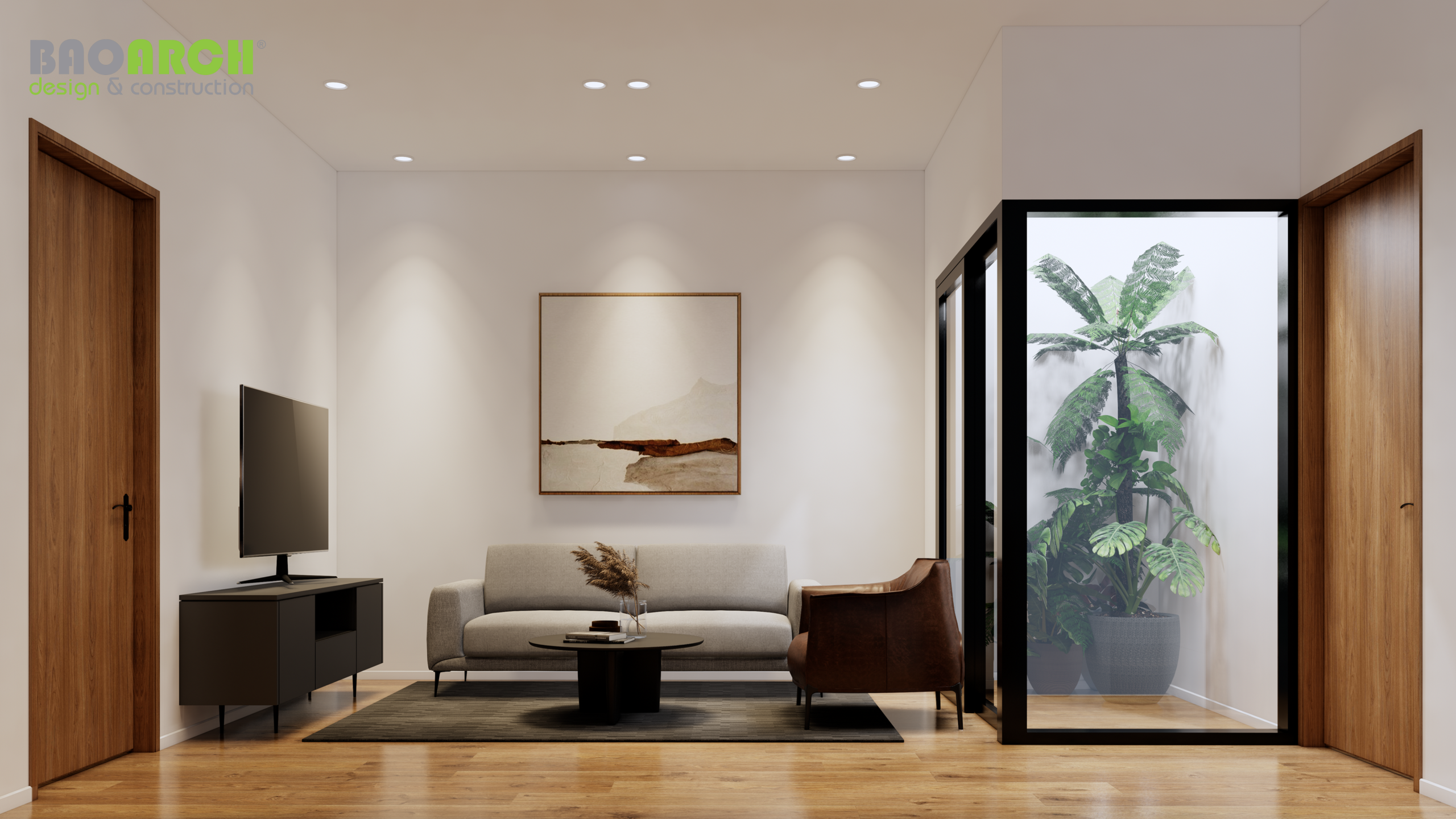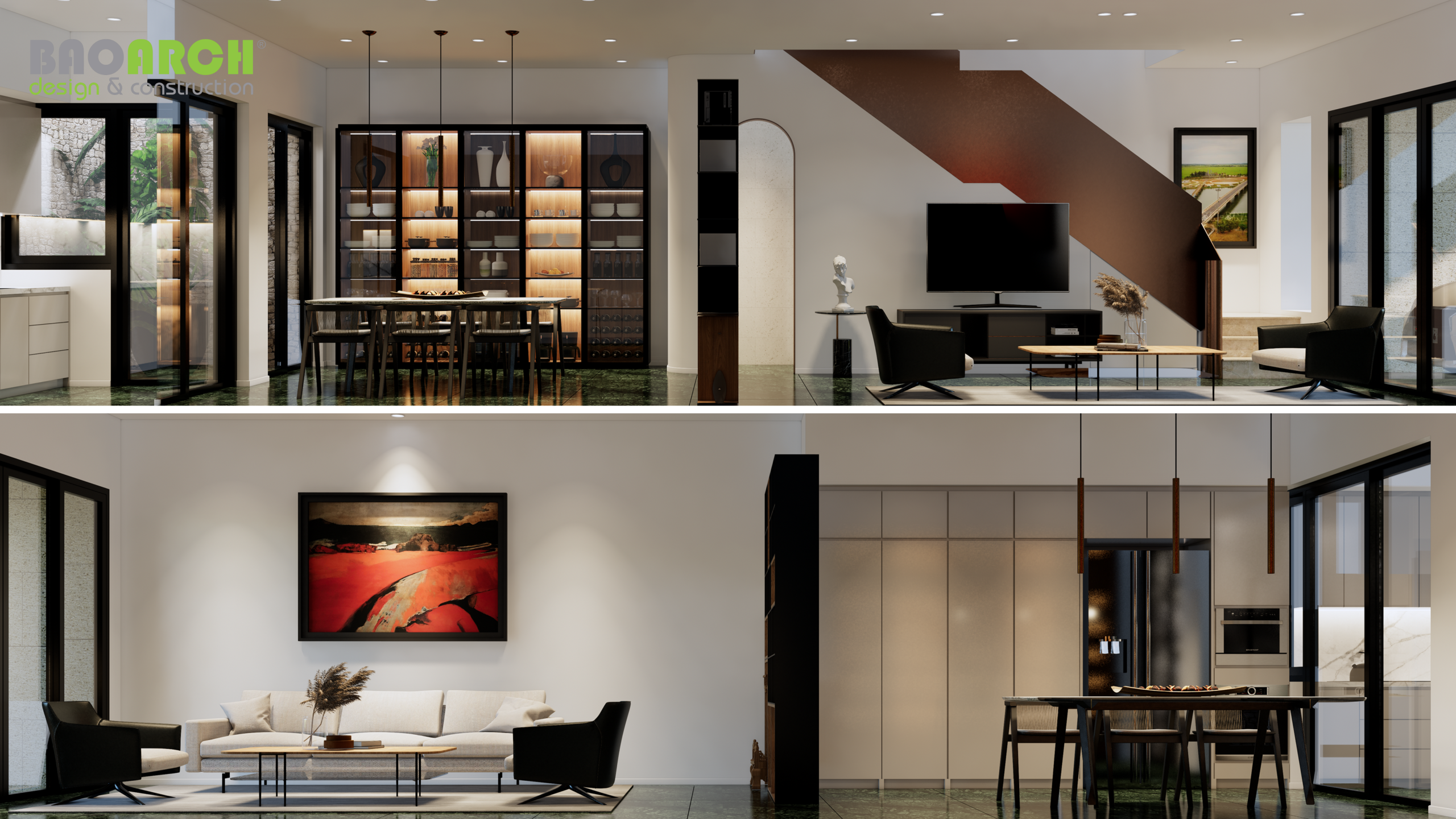 Đội ngũ Bảo Arrch thiết kế và hoàn thiện nội thất theo phong cách hiện đại và tối giản. Không gian nội thất được tối ưu hóa để tạo ra một không gian sống đa năng và tiện nghi cho gia đình chủ nhà.